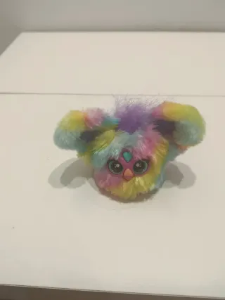 Furby interactivo en muy buen estado, con un diseño colorido. - Pelaje suave de color morado y azul. - Orejas grandes con detalles plateados. - Collar con cuentas de colores y un colgante.