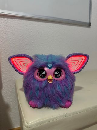 Este adorable muñeco Furby es un compañero interactivo lleno de personalidad. Su pelaje suave y sus grandes ojos lo hacen muy llamativo. - Pelaje multicolor en tonos morado, azul y rosa. - Orejas grandes y expresivas. - Pico amarillo.