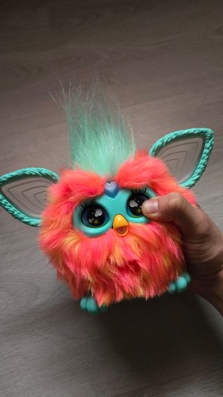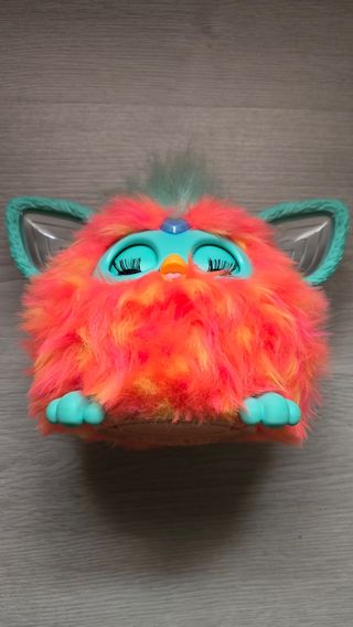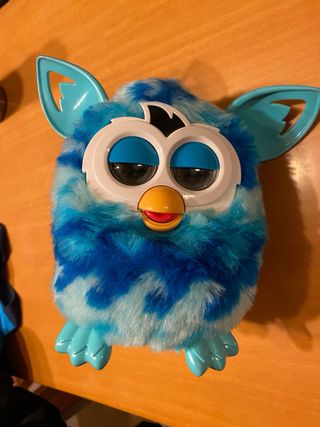 Furby interactivo con un diseño divertido y colorido. - Pelaje suave en tonos azules y celestes. - Ojos grandes y expresivos. - Orejas puntiagudas. - Pico naranja. no tengo muy claro si su funcionamiento es el normal. se enciende y hace cosas pero no se