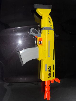 Se vende rifle de juguete Nerf Fortnite. Está en perfecto estado. - Es de color amarillo y gris. - Dardos a parte.