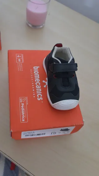 Zapatos infantiles de la marca Biomecanics. Se venden por separados - Color azul marino con detalles en rojo. - Cierre de velcro. - Suela blanca. - Interior textil.