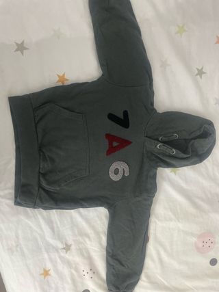 Sudadera gris de la marca Alvaro Moreno. - Talla 5. - Diseño con números y letras aplicadas. - Capucha con cordones. - Bolsillo canguro delantero.