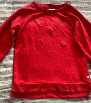 Sudadera de color rojo con un diseño de corazones en relieve. Perfecta para el día a día. - Marca: Zippy - Talla: 8 años - Color: Rojo - Diseño: Corazones en relieve