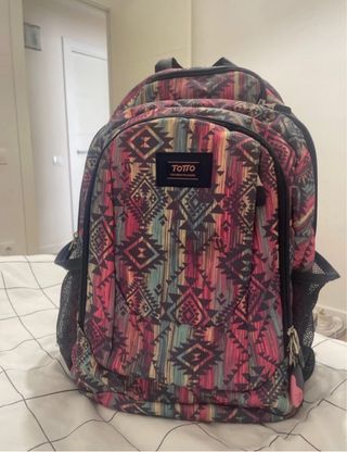Mochila escolar Totto con un llamativo estampado. - Diseño colorido y moderno. - Compartimento principal espacioso. - Bolsillos laterales de malla.
