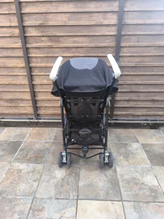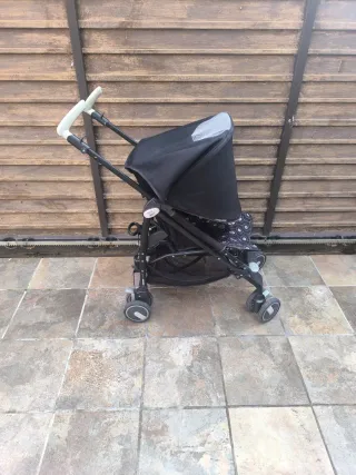 Carro de bebé ligero y fácil de plegar, ideal para paseos. - Color negro. - Empuñaduras blancas. - Ruedas delanteras giratorias. Valor nuevo 285€ y lo dejo por 90€