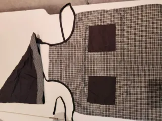 Delantal y pañuelo de tela con estampado de cuadros y bolsillo. Talla 2-6 años. - Diseño infantil. - Estampado de cuadros blancos y negros. - Bolsillo frontal. - Cintas para atar.