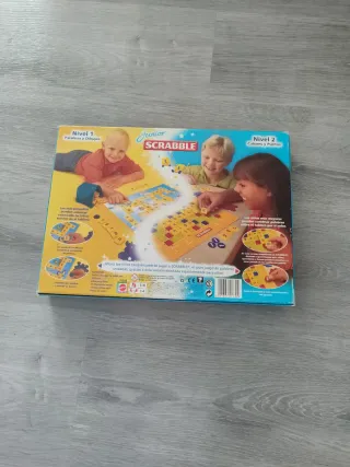 Juego de mesa Scrabble Junior, ideal para los más pequeños. Presenta un diseño colorido y divertido.Poco usado - Incluye tablero y fichas. - Diseñado para dos juegos en uno.