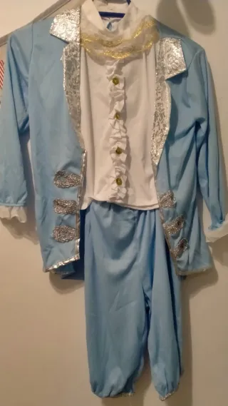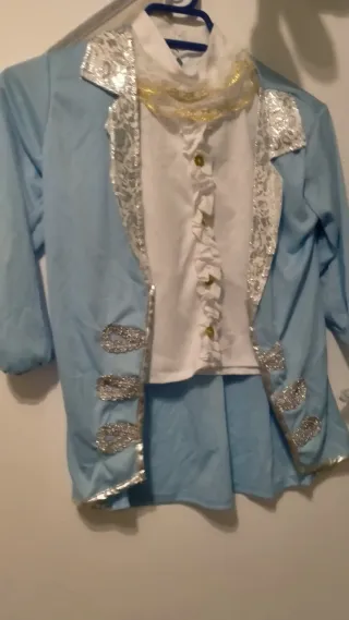 Conjunto barroco estilo mozart. Un solo uso talla 7-9 pero mi hijo lo usó con 6 años porque talla pequeño Chaqueta azul+ Camiseta sin mangas+ pantalón bombacho (es por debajo de la rodilla) Medida chaqueta de hombro a hombro 38-40cm ancho