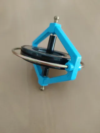 Peonza giroscopio Space Wonder con estructura azul y detalles metálicos. - Diseño de tres ejes. - Rueda interior negra.