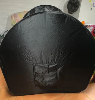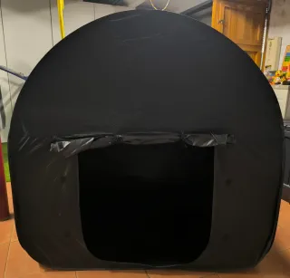 Tienda sensorial de color negro, ideal para crear un espacio de calma y relajación para los más pequeños. UN ESPACIO DE CALMA PARA SU HIJO – Cree un cómodo refugio sensorial para su hijo donde pueda jugar y alejarse del bullicio del mundo. Esta tienda de campaña relajante es perfecta para los niños con necesidades especiales que se sobre estimulan fácilmente y necesitan un entorno seguro para relajarse en casa o en la escuela. Utilizar luces UV, proyectores, lámparas de lava y otros juguetes luminosos especiales para un espacio snoezelen. Comprada en Amazon, precio 79€ medidas 120 cm.