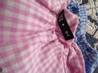 Mandilón para bebé con estampado de cuadros. - Diseño de cuadros en rosa y blanco y azul y blanco - Etiqueta TEX 0-1 visible.