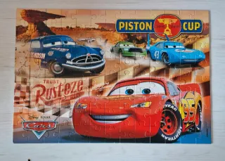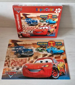 Puzzle de la película Cars de Clementoni con 104 piezas. - Ilustración de los personajes de Cars. - Serie Supercolor. - Incluye 104 piezas. Algunas piezas de la primera columna están algo arrugadas ya que le cayó agua, el resto de piezas perfectas