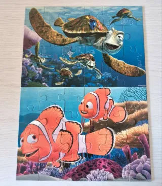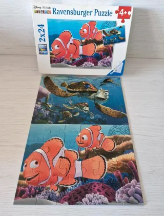 Puzzle de Ravensburger con licencia oficial de Disney Pixar, de la película Buscando a Nemo. - Incluye 2 puzzles de 24 piezas cada uno. - Diseño con los personajes de Nemo y Dory. - Ideal para los más pequeños. Una pieza con celo (ver última foto)
