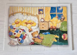 Puzzle de 20 piezas con una escena infantil de una habitación. - Ilustración de patitos y ositos durmiendo. - Diseño colorido y tierno.
