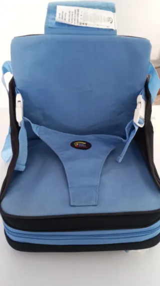Elevador para silla de niños de la marca The First Years. - Tejido de malla azul. - Correa de sujeción azul con hebilla blanca, para sujetar al niño. - Cremallera en la parte inferior, para elevar cojin. - Se sujeta a la silla. - Como Nueva!!