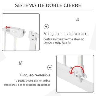 - Acceso sencillo a través de un cierre en la parte superior que se puede abrir con una mano - Fabricada en metal con pintura en polvo de resistencia electrostática, duradera y adecuada para un uso prolongado - Cierre inteligente para mayor comodidad al cerrar la puerta - Esta barrera separadora para mascotas viene con 3 extensiones para ajustarse a diferentes anchos - Color: blanco - Material: metal y plástico - Medidas totales: 74-80x76,2 cm (LxAL)(ancho regulable con tornillos) -Espacio entre barrotes: 4-6 cm - Referencia: D06-096WT