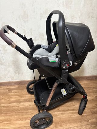Carro de bebé con silla de coche negra