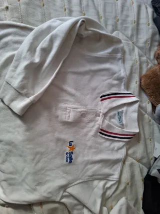Polo blanco de la marca Mc Yadra, talla S. - Cuello con detalles de rayas rojas, blancas y azules. - Logo de La Salle bordado en color naranja y azul. Tiene una pequeña mancha de rotu.Dispongo de otros menos puesto. Este a precio 3€.No esta roto.Ver fotos simplemente mas uso y pequeña mancha