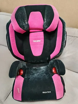 Silla de coche Recaro Monza Nova en color rosa y negro. - Diseño ergonómico. - Tapicería acolchada. - Reposacabezas ajustable.