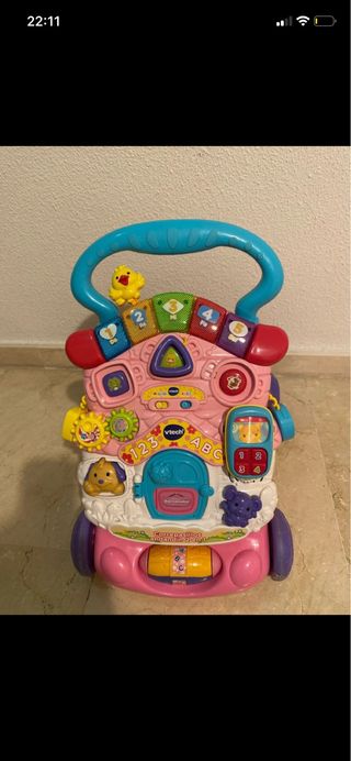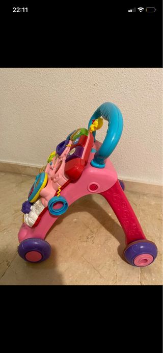 Andador de aprendizaje para bebés de la marca VTech, en color rosa. - Centro de actividades interactivo. - Incluye juegos de números, letras y animales. - Ruedas para facilitar el movimiento.