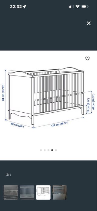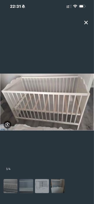 Cuna de bebé de la marca Ikea, en color blanco. Ideal para habitaciones infantiles. - Estructura de madera. - Barreras de seguridad.