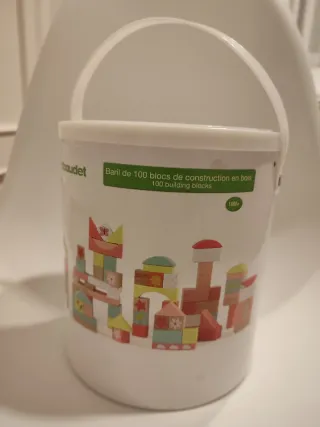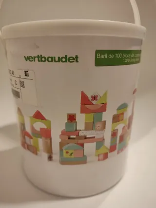 Barrilete de 100 bloques de construcción de madera de la marca Vertbaudet. - Diseño colorido y educativo.