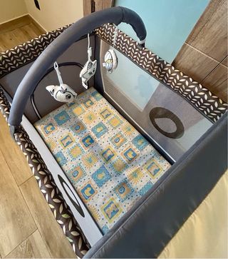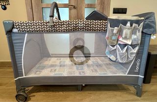 Cuna de viaje marca Lionelo, ideal para los más pequeños. Incluye colchón y cambiador. - Diseño moderno y funcional. - Laterales de malla para ventilación. - Bolsillos organizadores. - Ruedas para fácil movilidad.