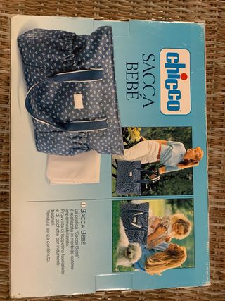 Bolso para bebé de la marca Chicco con un bonito estampado. - Diseño Sacca Bebé. - Estampado floral en tonos ocres y marrones. - Incluye fotografía de familia.
