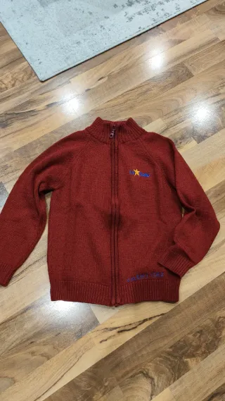 Chaqueta de punto con cremallera completa, ideal para uniforme escolar. - Color rojo. - Logo de La Salle bordado en el pecho. En perfecto estado.