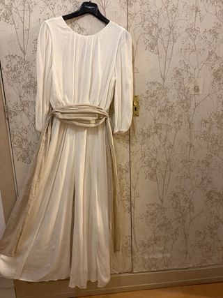 Elegante mono blanco para niña, ideal para celebraciones. 152 cm - Tejido ligero y vaporoso. - Cinturón de tela a juego. - Mangas largas abullonadas.