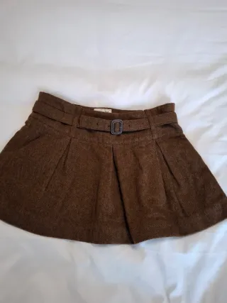 Falda de la marca Massimo Dutti en talla 11-12 años. Confeccionada en un tejido marrón con estampado de espiga y detalle de cinturón. - Diseño con vuelo. - Cinturón con hebilla. - Tejido de espiga. Forrada. Cremallera lateral Cintura regulable interiormente con goma y botón