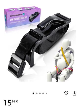 Adaptador para cinturón de seguridad diseñado para embarazadas. Permite ajustar el cinturón de forma cómoda y segura. - Color negro. - Material de nailon y plástico.
