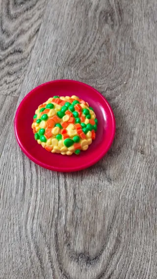 Set de comida de juguete para horas de diversión. - 🌭Incluye un hot dog con pan y salchicha. - 🍟5 patatas fritas onduladas - 🍩Un donut con glaseado de chocolate. - 🥤Una taza rosa. - 🍽️ Regalo los platos, ambos 2