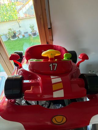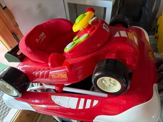 Andador para bebés con diseño de coche de carreras casi sin uso. - Color rojo brillante. - Volante interactivo con sonidos. - Asiento acolchado para mayor comodidad. Precio negociable A recoger en Guadalix de la sierra o alrededores