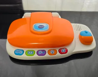 Ordenador portátil de juguete VTech para niños. Ideal para aprender jugando. - Color naranja y blanco. - Incluye ratón. - Botones con iconos de ABC, 123, animales, dados y música.