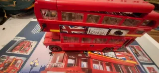 Set de construcción Lego Creator 10258, el icónico autobús de dos pisos de Londres. - Detalles auténticos del autobús londinense. - Incluye elementos decorativos como la bandera del Reino Unido y Explore London. - Con caja y libros de instrucciones - Solo tiene una pieza estropeado que se puede pedir fácilmente en Internet.