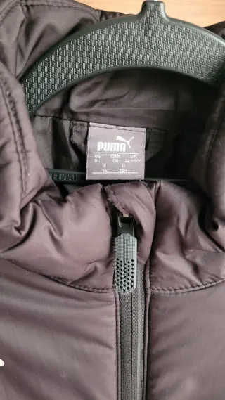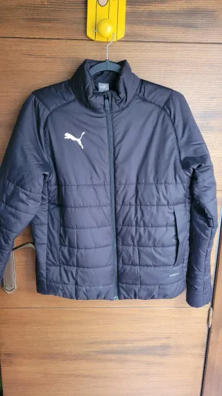 Chaqueta infantil acolchada de la marca Puma, inspirada en La Liga. Muy poco uso, prácticamente nueva. - Talla 13-14 años (164 cm). - Color negro. - Logo de Puma en blanco. - Cierre de cremallera. - Bolsillos laterales. - Tecnología Warmcell.