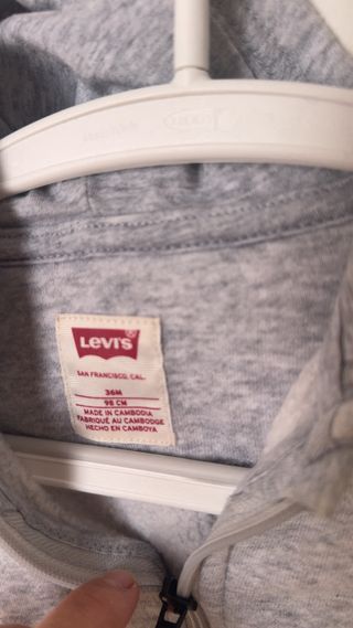 Sudadera gris con capucha de la marca Levi's. - Cierre de cremallera. - Logo de Levi's bordado en el pecho. - Bolsillos frontales. - Puños y bajo elásticos.