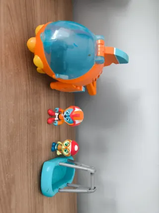 Set de juego de la serie Top Wing con una avioneta y figuras. - Avioneta de color naranja y azul. - Incluye dos figuras de personajes. - Accesorios de juego. -Alas plegables. -Luces en la parte frontal y sonidos de la avioneta. -Garras para cojer la plataforma azul y gris. -En la garra tiene 4 ruedas -Mango en la parte de atrás.