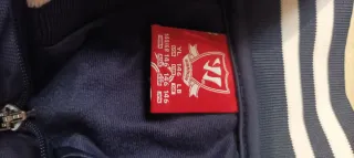 Conjunto de chándal del Sevilla FC. - Chaqueta azul marino con cremallera. - Pantalón a juego. - Escudo del Sevilla FC bordado en ambas prendas. - Logo de Warrior en la chaqueta.