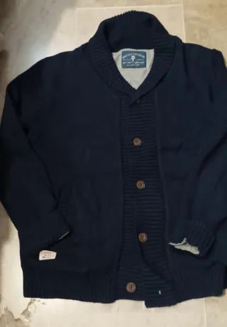 Rebeca de punto azul marino de la marca Brotes. Presenta un cuello tipo chal y cierre de botones. - Cuello tipo chal. - Cierre de botones. - Bolsillos laterales.