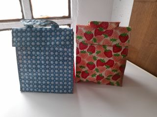 bolsitas de merienda, una azul y otra roja. Las dos 3,50 euros una sola 2 euros