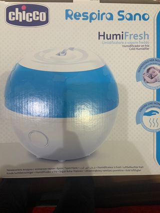 Humidificador Chicco HumiFresh para un ambiente más confortable. Diseñado para usarse con agua fría. - Modelo: HumiFresh - Marca: Chicco - Tipo: Humidificador de vapor frío - Diseño esférico en blanco y azul