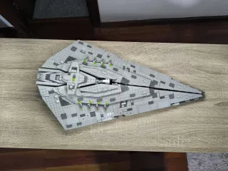 Nave espacial construida con piezas de Lego, inspirada en el universo Star Wars. Ideal para coleccionistas y aficionados. Se venden tal cual sin muñecos faltan algunas piezas pequeñas - Diseño detallado en color gris. - Elementos decorativos en verde.