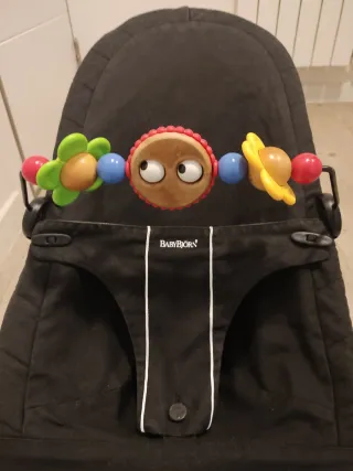 Accesorio de juego para la hamaca BabyBjörn. Este juguete está diseñado para entretener al bebé. - Incluye un personaje central con ojos. - Cuenta con elementos de colores como flores y cuentas. - Se sujeta a la hamaca mediante un arco.