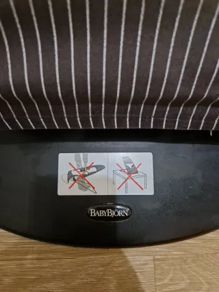 Hamaca para bebés de la marca BabyBjörn en buen estado. Ideal para el descanso y entretenimiento del bebé. - Diseño con rayas verticales blancas. - Funda reversible para usarse también en color negro. - Asiento acolchado para mayor comodidad. Juguete no incluido. Se vende en anuncio separado pero pregunten si quieren todo junto (también tengo la bolsa de transporte).