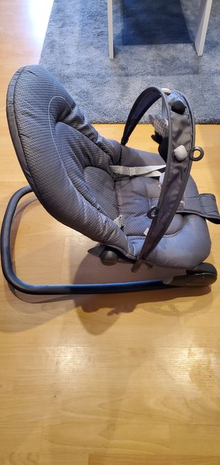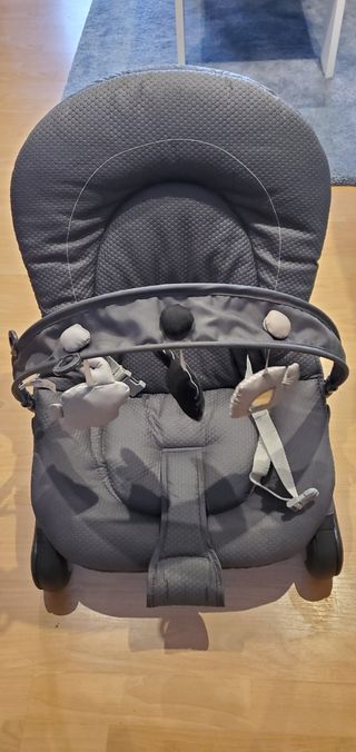 Esta hamaca es ideal para los momentos de relax del bebé. Su asiento amplio y acolchado proporcionará el máximo confort, y su respaldo reclinable proporcionará la postura más cómoda. La estructura es fácilmente plegable y fácil de transportar. Con dos modos de uso: fija o balancín. Usada 2 veces porque nuestro bebé estaba acostumbrado a otra anterior y ya no la aceptó. Dimensiones abierta: 47 x 32/62 x 78 cm. Dimensiones plegada: 47 x 78 x 11 cm. Peso: 3 kg. Adecuada para el uso desde el nacimiento hasta los 18 kg. Precio original en Amazon 85€.