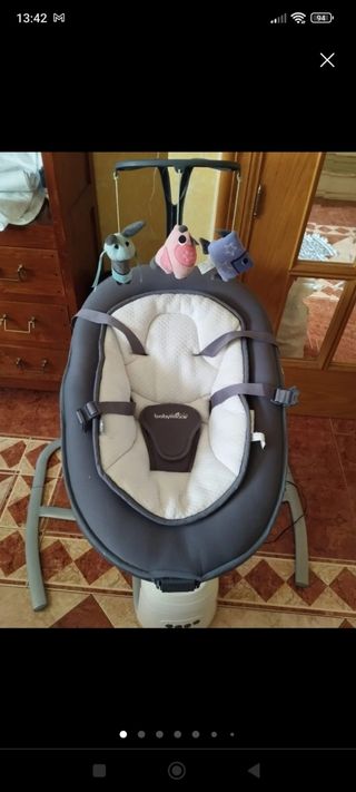 Casi sin uso, con música y mece sola, regulable en velocidad. Tengo multitud de cosas para bebes que ya no uso. Si necesitas algo en concreto pregunta y subo fotos.