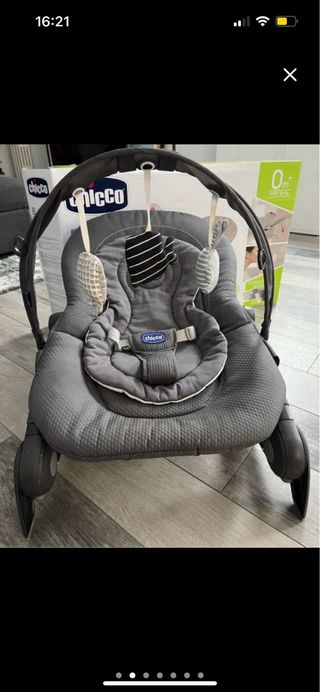 Hamaca Chicco Hooplà – Evolutiva 2 en 1 Hamaca original Chicco Hooplà, usada pero casi como nueva, sin marcas de uso ni desperfectos. Muy cuidada. ✔️ Apta desde recién nacido (0 meses) ✔️ Respaldo reclinable en 4 posiciones ✔️ Modo balancín o fijo ✔️ Arnés de seguridad ✔️ Barra con juguetes/peluches colgantes regulables ✔️ Reductor acolchado para los primeros meses ✔️ Funda desenfundable y lavable ✔️ Plegable y ligera, fácil de transportar y guardar 👉 Se usa como hamaca hasta aprox. 9 kg y luego se convierte en primera sillita hasta 18 kg. ❌ No dispongo de la caja original. Ideal para descanso y juego del bebé 👶🏻✨