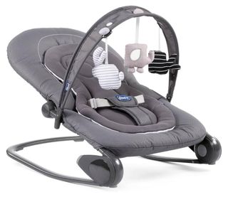 Hamaca para bebés Chicco Hoopla en color gris. - Diseño ergonómico y acolchado. - Sistema de arnés de seguridad. - Barra de juegos extraíble. - Respaldo reclinable en varias posiciones.